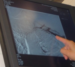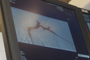I was looking at old pictures tonight. I came across photos from one of my blood clots. In October 2009 I had a port-a-cath (or port for short) in my arm. A port is an implantable device under the skin used for the delivery of I.V. medication or blood draws. I was noticing that once in a while my hand and arm would turn purple, not for very long but enough that it was bothering me. It felt like I had a rubber band around my arm. After some time it started to get worse. The thing was everytime I was near a doctor my arm was just fine. I tried to figure out what would trigger it but couldn’t. It got to a point we had to make a of trip to the emergency room. When we arrived the E.R. doctor finally saw the purple hue I was talking about. He ordered some tests, but everything came back normal so they sent me home. Another week passed, my arm started to turn purple more often and for a longer period of time. I demanded they do some further investigating. Your arm shouldn’t turn that color without an explanation. The next morning I had an appointment. I’m laying on the table looking at the monitor as they inject dye into my my vein. Are you kidding me? The flow just stopped! Change of plan for my day, I ended up having an angioplasty. They thread up a device with a balloon at the end. Then blow up the balloon with the intent to stretch the vein enough to have blood flow again. They pumped up the balloon three times and then re-checked with the dye. YAHOOO it worked!