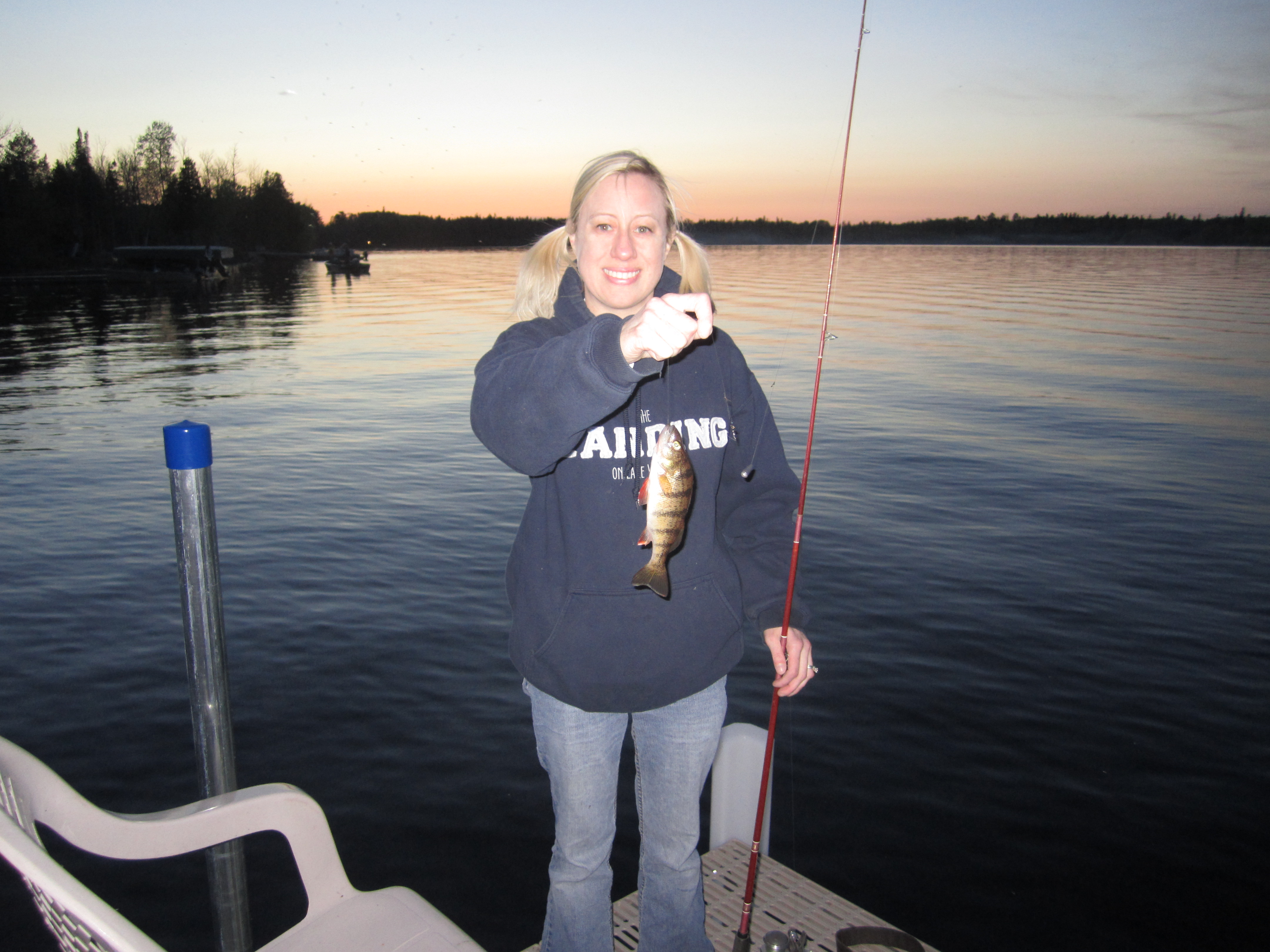 After my regular check up with my doctor last Thursday, we decided to head up north to Lake Vermilion for the fishing opener and spend Mother’s Day with Trav’s mom. The weather was great, the only problem was the fish weren’t biting much! Although between five of us fishing, we did catch enough to eat lunch. I only caught one little perch, but as you can see Travis was the big winner with a 3 1/2 lb bass. We had a nice time, it was relaxing sitting by the lake but I was pretty exhausted coming home.