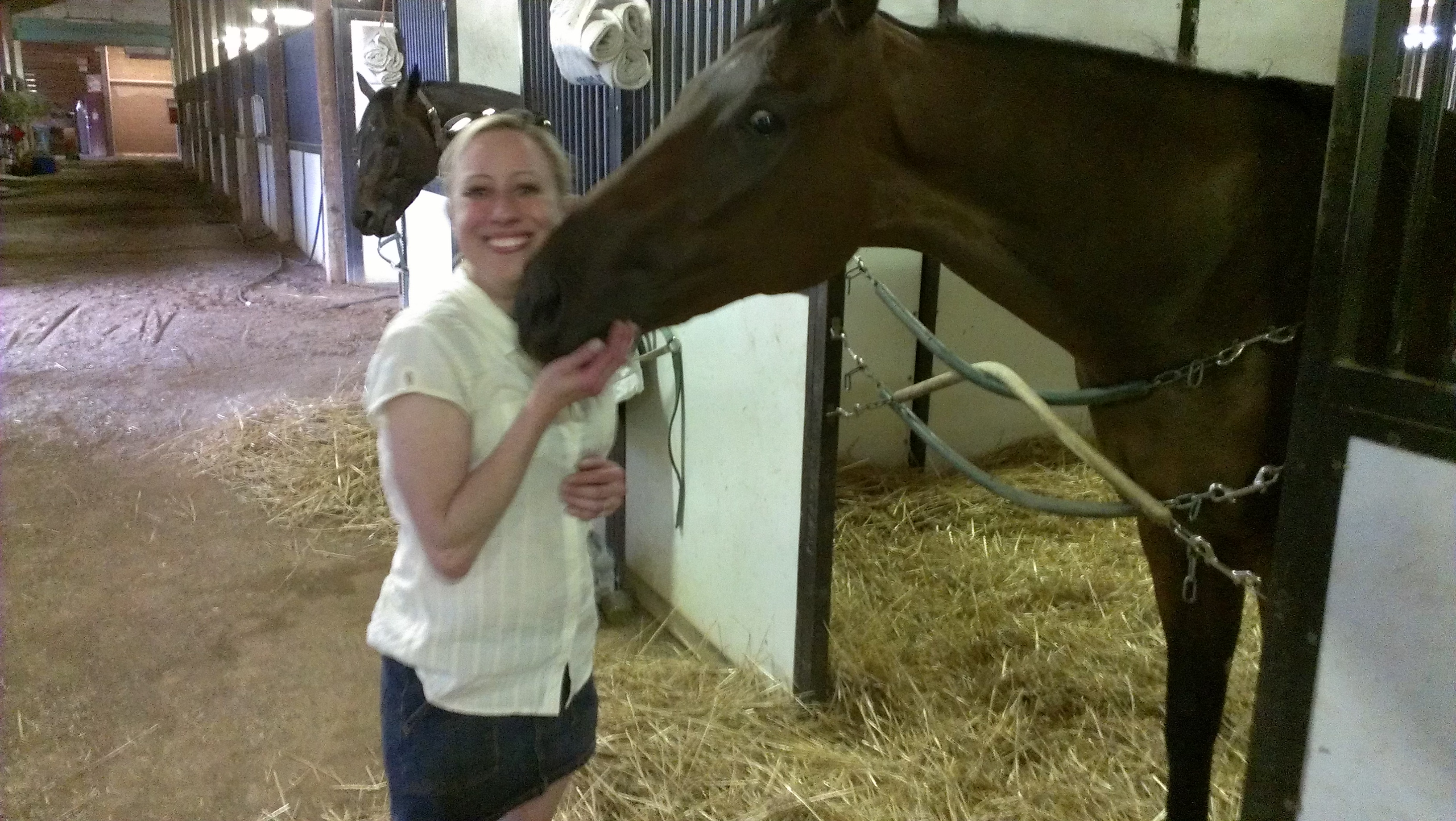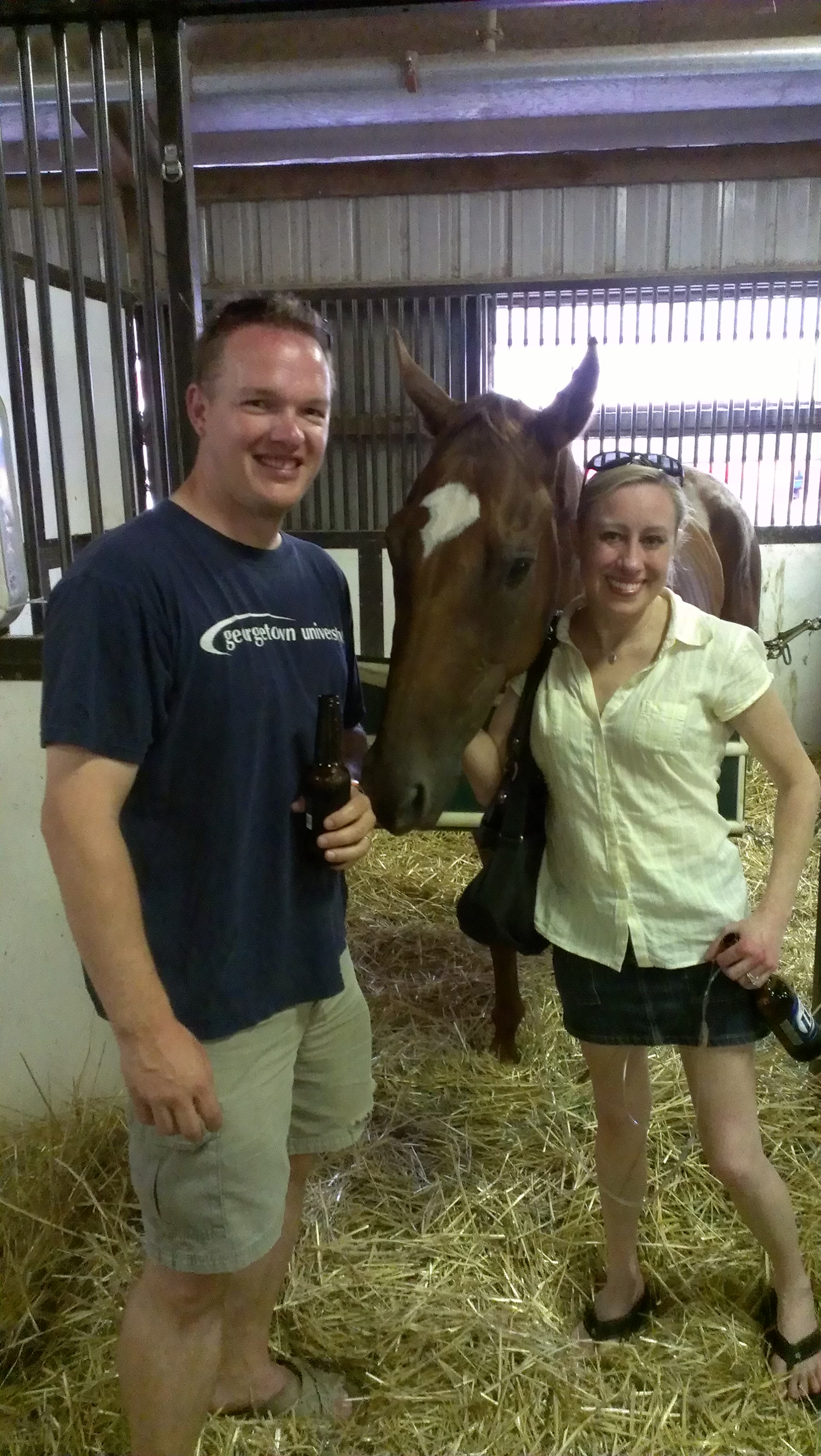 On Sunday, we went to Canterbury Park. One of our friends owns a horse that was racing. Last year, he won this same race and we got our picture taken in the winners circle. There was no such luck this year as he finished in 3rd place. Afterwards we hung out in the stables for a little while.
