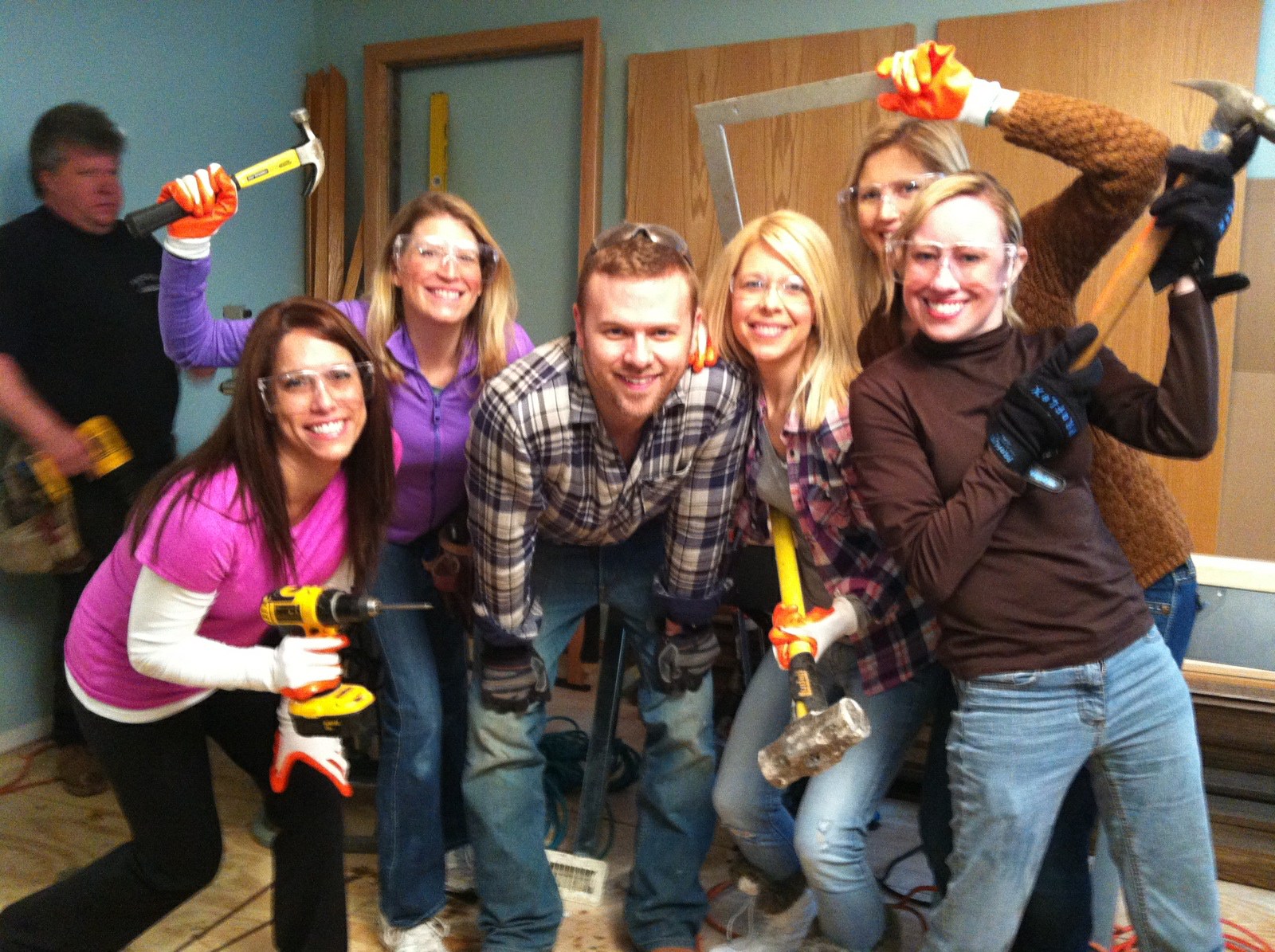 If one reality show wasn’t enough….We flew home from L.A. last night and this morning we helped our friends kick off remodeling their bathroom on the show Bath Crashers! We helped cheer them on and assisted in the demolition of the old bathroom. We are so excited for our friends, Jay & Kimmy, to get their new bathroom. Can’t wait to see the finished product which should be done in only a few days! I will let you know when that airs too!