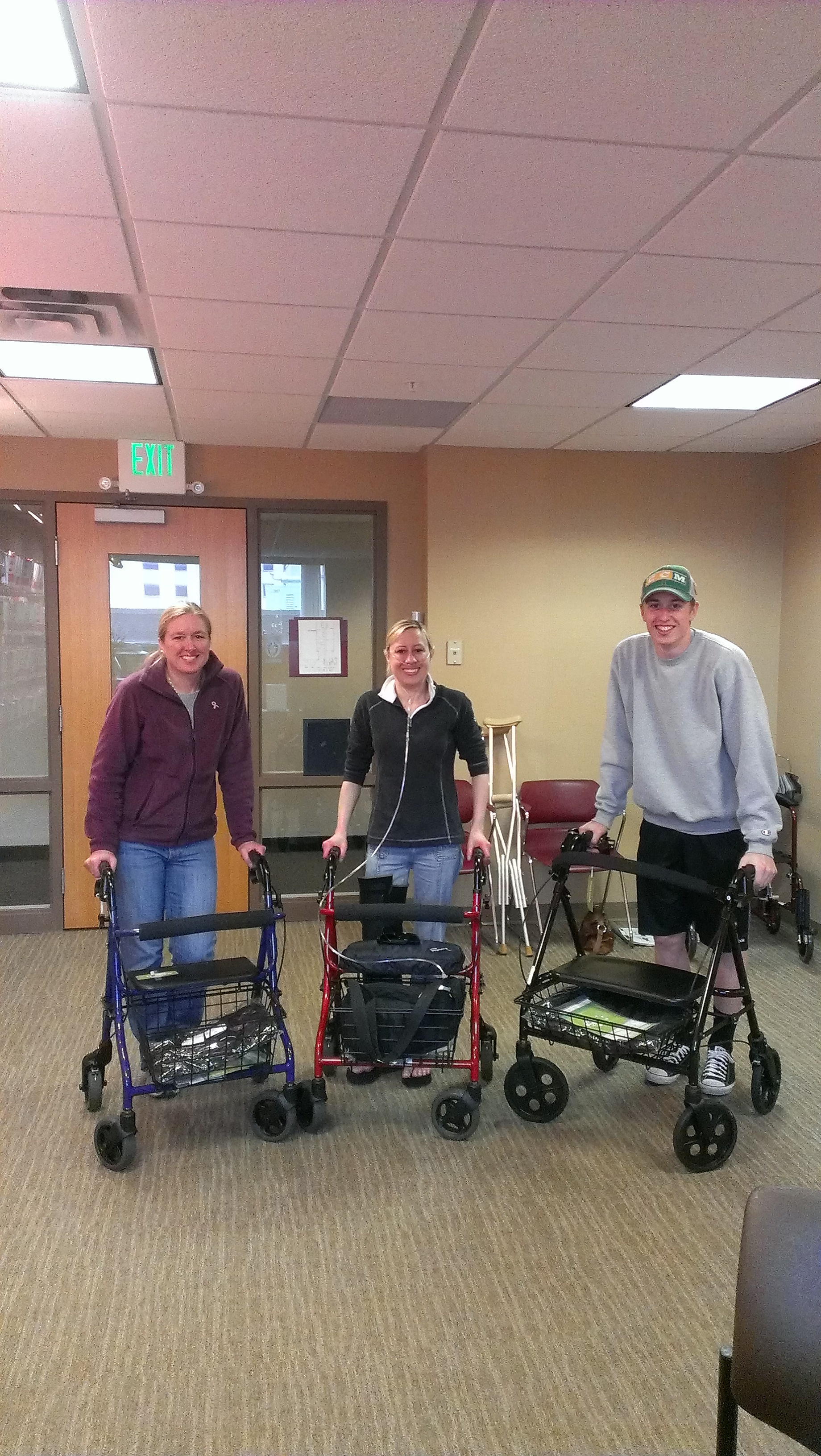 Hi nikki, i also had to use one of those handy walkers for a whle, i broke my hip in october. By the way my name is Danita. I am also waiting for lungs at the university of mn. I also have been waiting a long time. I went on the list jan. 19 2010. Hope you stay healthy as you wait! Good luck on your knee!