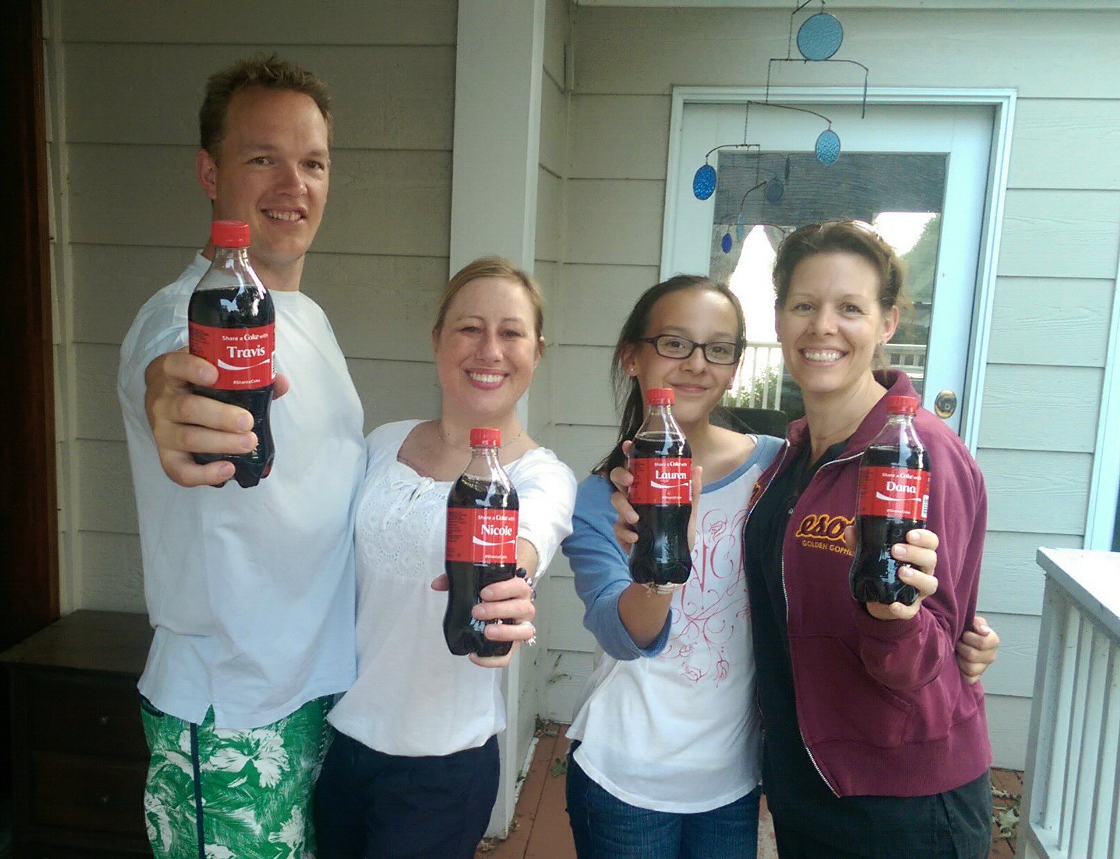 Phew, no wonder I was exhausted on Friday. I’m getting tired writing about everything I have done this last week. I also spent a night out with Dana, enjoyed some time by the fire and then, my brother surprised us all with personalized Coca Cola bottles. I’m sure it took some searching to find all of our names. I’m enjoying breathing, living, loving life.