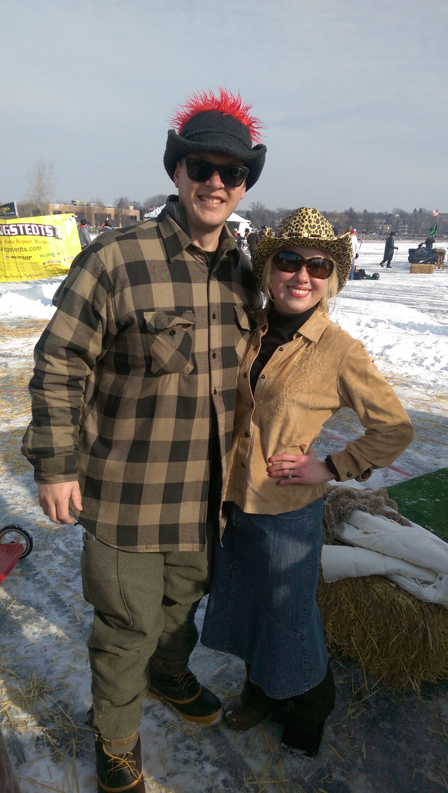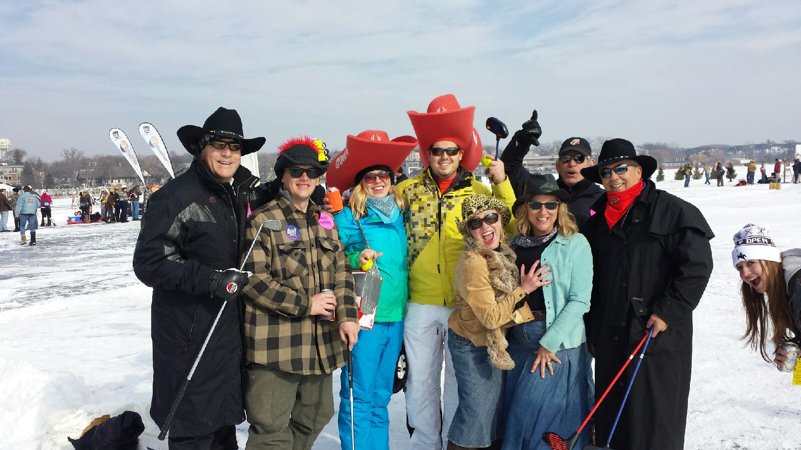 Yesterday, we attended the Chilly Open in Wayzata. There is chili to taste at the Chilly Open but the main purpose is golf. That’s right, golf outside in Minnesota in February! They carve out 9 hole golf courses on Lake Minnetonka. It’s basically putt putt golf with tennis balls on the frozen lake with a theme. This year’s theme was country. Thanks Jim and Lori, we had a blast with this group!