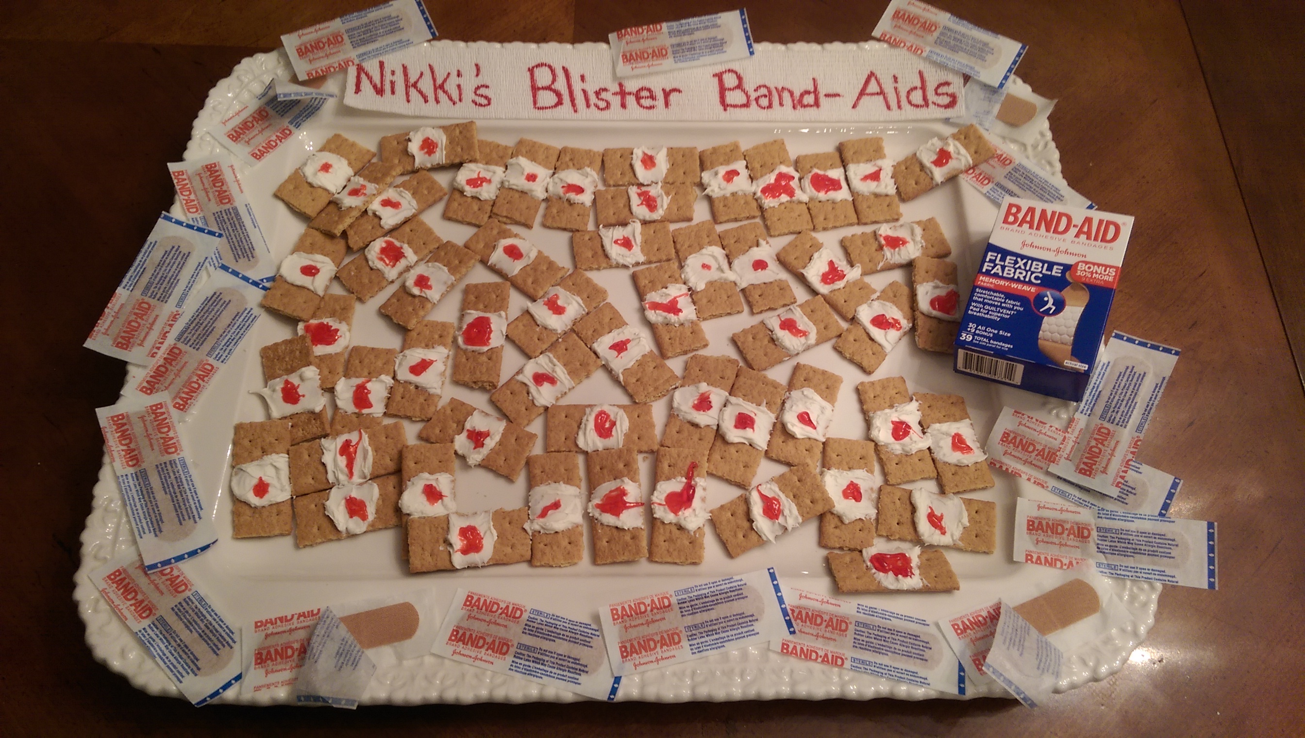 Friday of Halloween weekend we showed up at the neighbors for a party. Knowing there were going to be a bunch of kids in line to tour the haunted house that serves as a garage the other 364 days of the year, I wanted to bring some very special “food” items. I had saved my “blister bandages” and Travis spent a whole two days collecting “ear wax”. They were delicious!