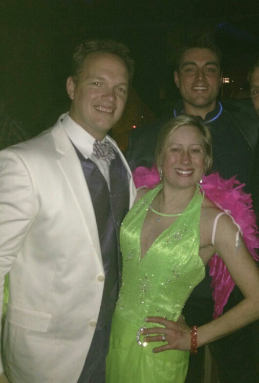 Great photo–handsome couple!! Love the pink angel wings–nice touch! Kathy said she and Ro left your birthday party about 5:30 a.m.–must have been quite the celebration! Loved your Christmas card! Happy New Year to you both!!!!!!!!!!!!!