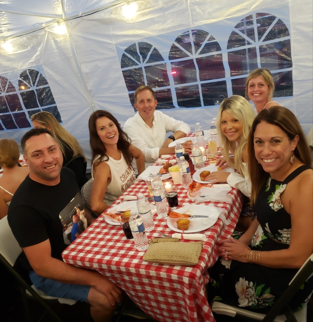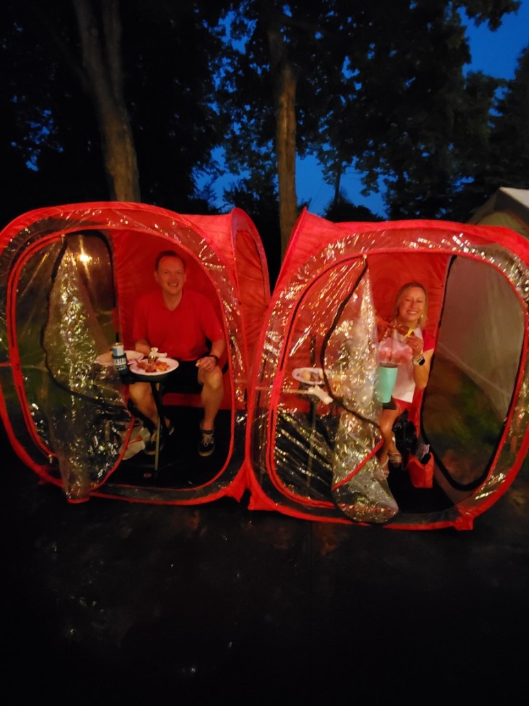 We were worried when we saw the forecast of rain but NOTHING was going to prevent this crowd from celebrating this year! There was a large tent for some, a covered deck for others, and to keep us at a safe distance, we brought our bubble tents.