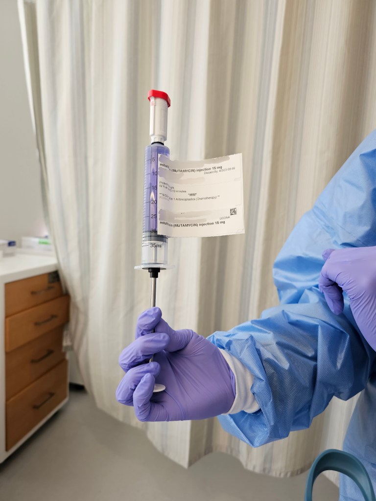 I’m taking two types of chemo, the pretty color purple one is called Mytomycin and they push it through my Hickman over 5-10 minutes. The second in the clear bag is called Fluorouracil or its nickname is 5FU. It’s a week full of F.U. 😉 It stayed attached to me 24/7 until it was unhooked this last Friday. The radiation continues for another 4+ weeks. I have a chemotherapy break and will repeat the same process starting on day 29 of my treatment.